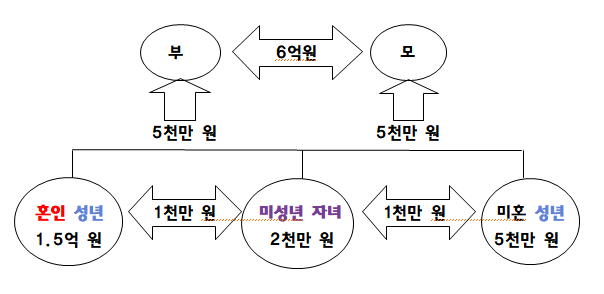 - 출산 후 혼인·출산 증여공제 요건을 충족하게 되었을 때, 부모님으로부터 동일 금액을 증여받습니다.