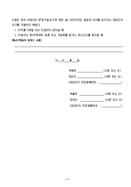 더불어, 상환 방식(계좌이체, 현금 등), 수령 확인 영수증, 기한 내 미상환 시 연체이자 부과 조건, 보증인의 인적 사항 등을 함께 기재하면 분쟁 예방에 더 효과적입니다.